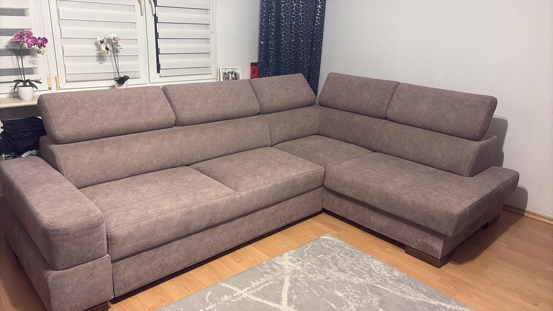 Witam mam na sprzedanie narożnik w kolorze beżowym z funkcją spania ,pojemnikiem na pościel.Wymiary 2.85x2