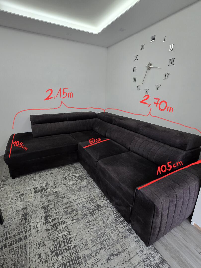 Dokładne wymiary są na jednym ze zdjęć. Narożnik posiada duży pojemnik na pościel.