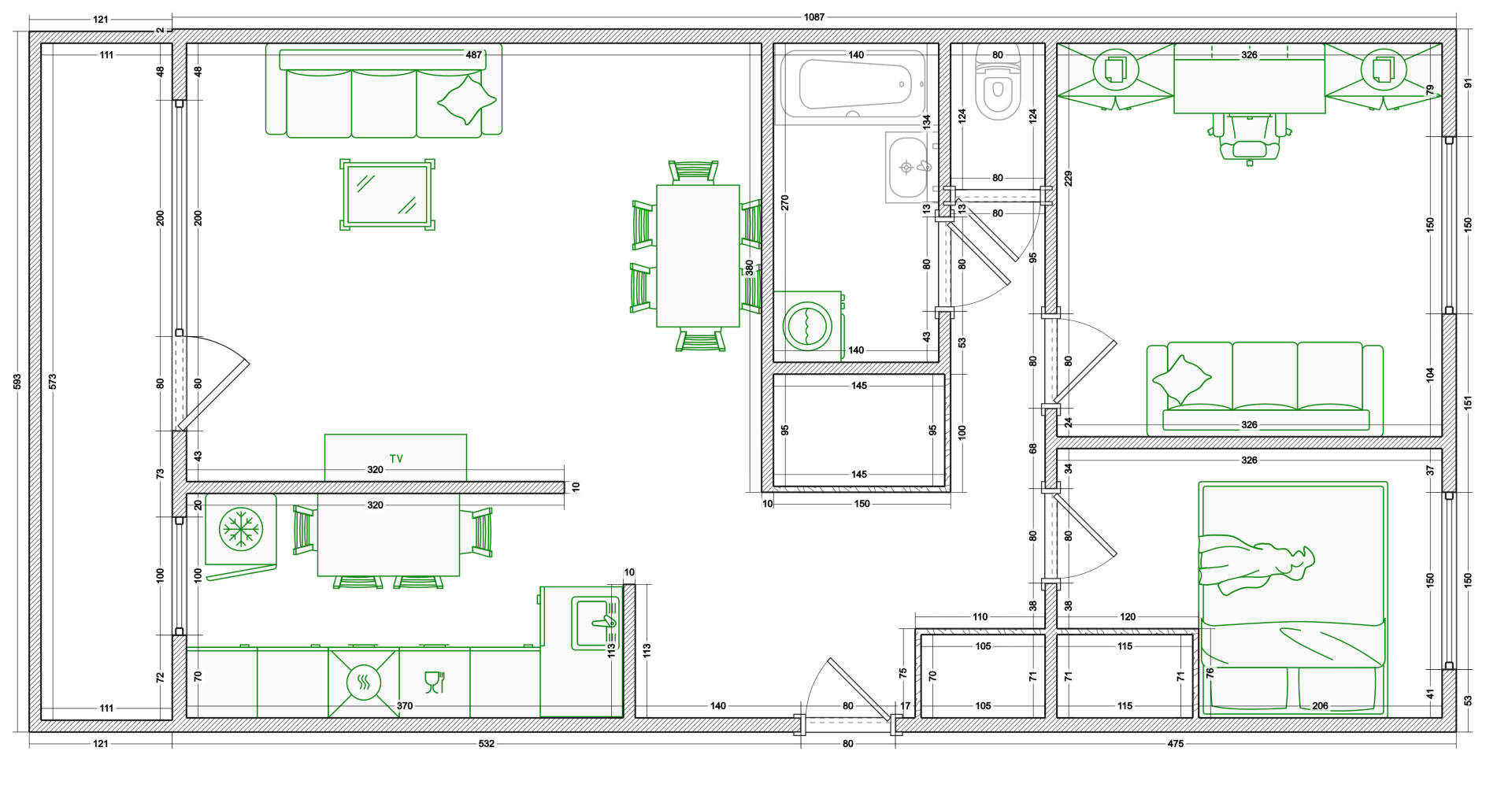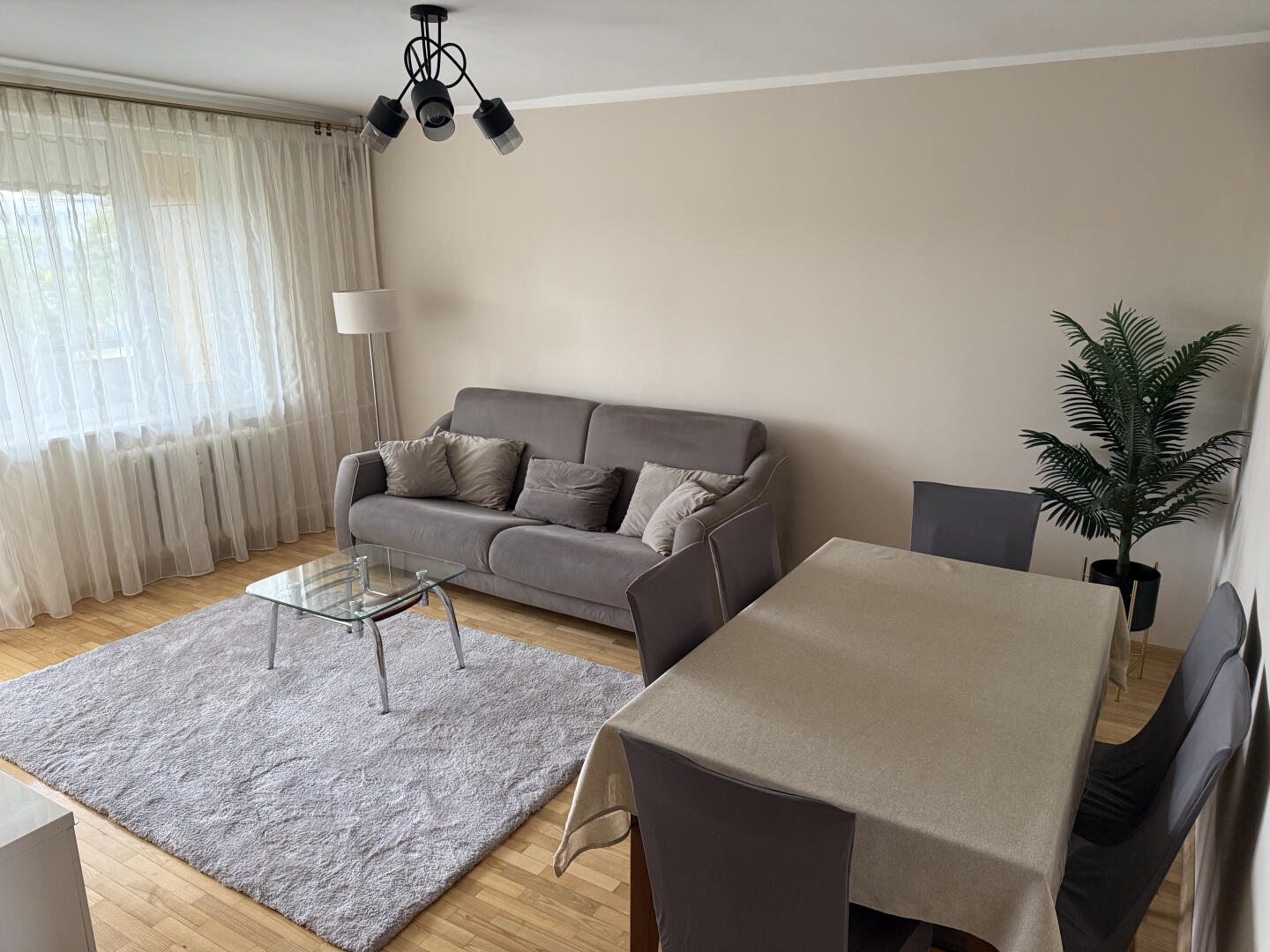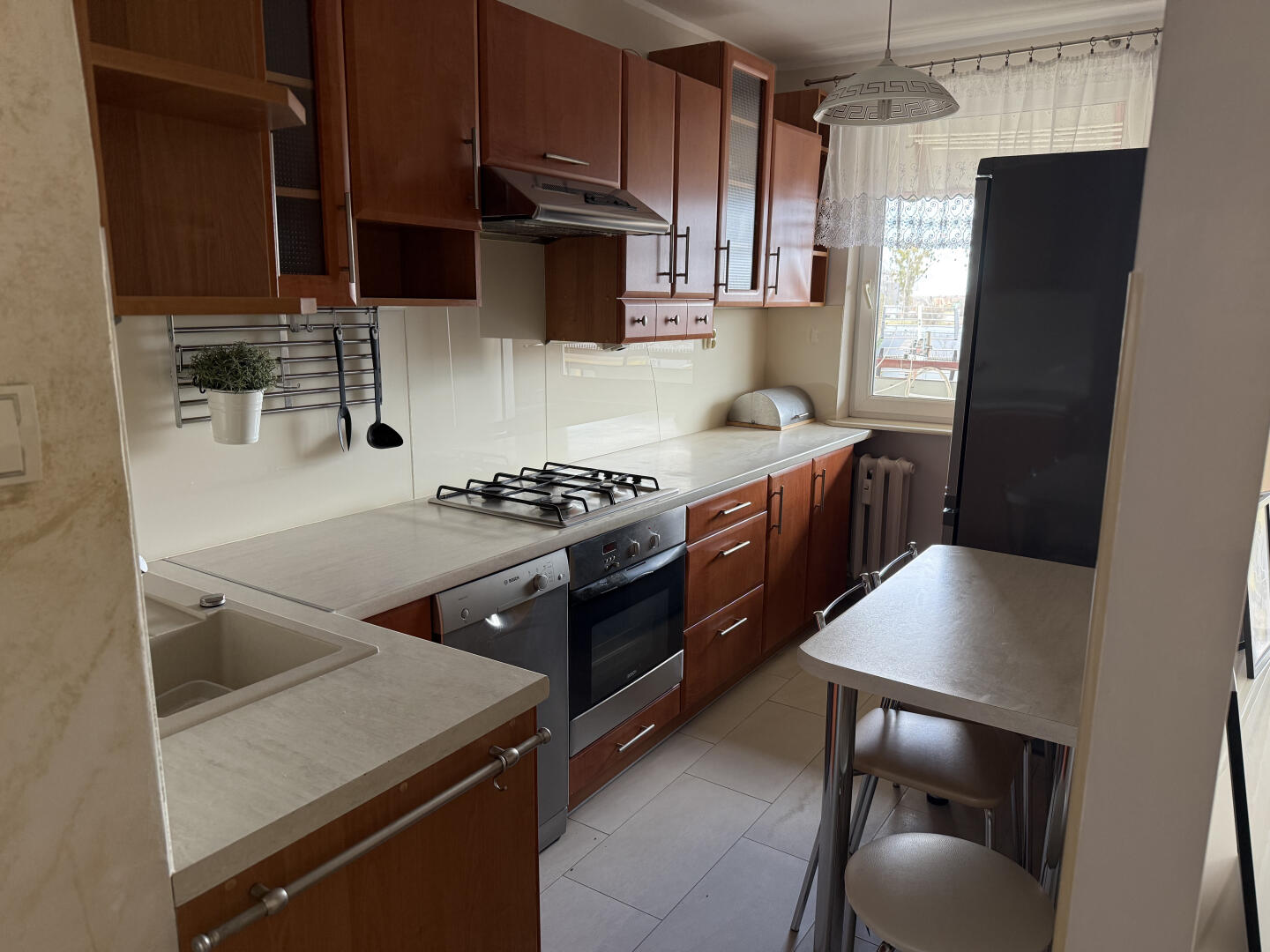 Mieszkanie składa się z dużego salonu z wyjściem na balkon, oddzielnej funkcjonalnej kuchni, sypialni, dodatkowego przestronnego pokoju, łazienki z wanną oraz osobnej ubikacji. Dodatkowo w korytarzu stoją dwie duże szafy. Do mieszkania przynależy również piwnica zapewniająca dodatkowe miejsce do przechowywania.