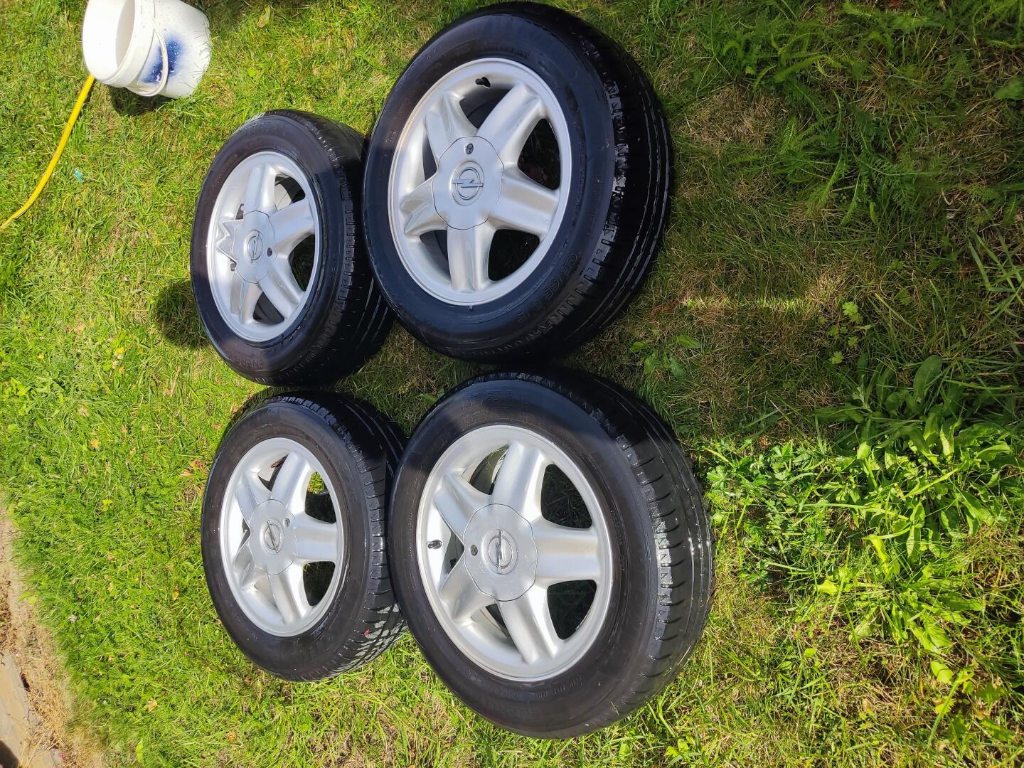 Sprzedam alufelgi 15 od opla opony na sezon starczą letnie